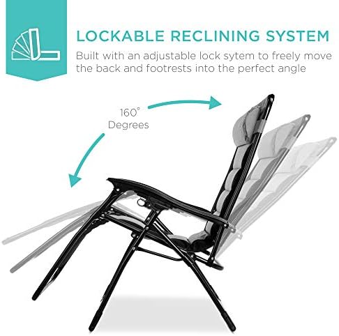 Best Choice Products Oversized Padded Zero Gravity Chair Folding Outdoor Patio Recliner XL Anti Gravity Lounger for Backyard w/Headrest Cup Holder Side Tray Polyester Mesh – Black/Gray