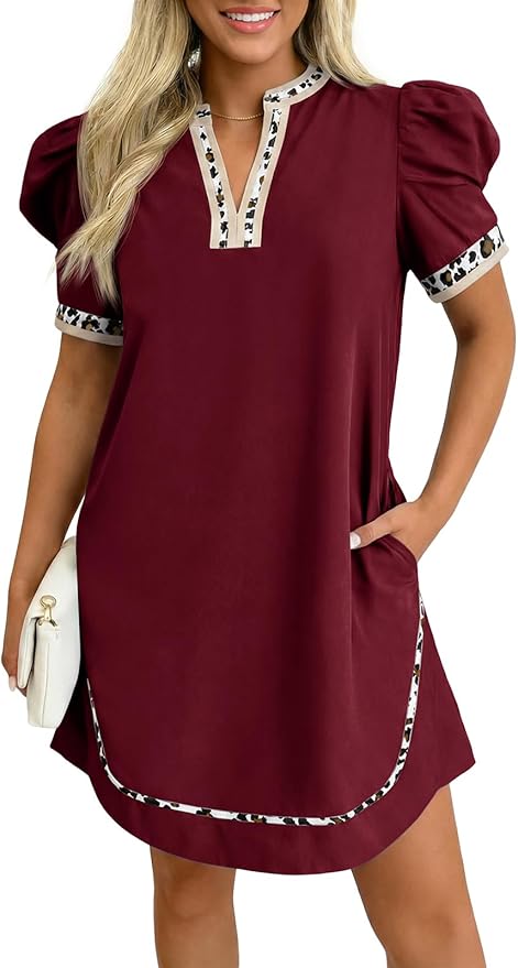 - Leopard Design: Leopard print of this puff sleeve short dress accents at the collar, cuffs, and hem create a clever color-blocking effect, enhancing visual depth and fashion-forward appeal