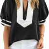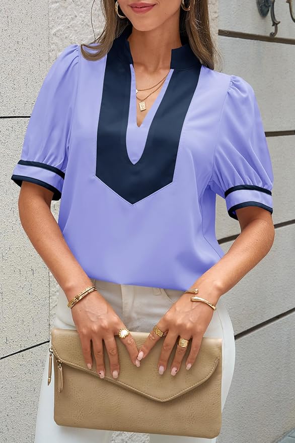 - Exquisite Details: Womens summer tops with cute lantern sleeve and v neck color block on neckline add a sense of playfulness to your outfit