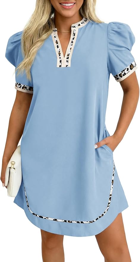 - Leopard Design: Leopard print of this puff sleeve short dress accents at the collar, cuffs, and hem create a clever color-blocking effect, enhancing visual depth and fashion-forward appeal